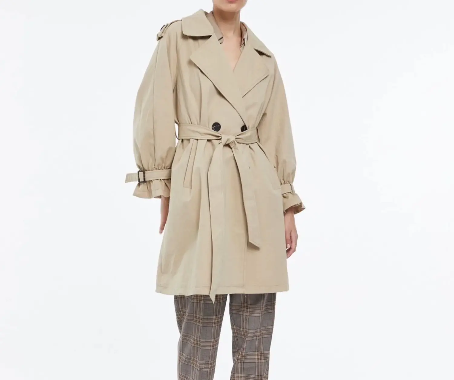 Gabardina de corte recto con diseño cruzado y cinturon ajustable a la cintura . Cuenta con cuello clasico y botones delanteros. Una prenda atemporal y ligera, ideal para entre tiempo.